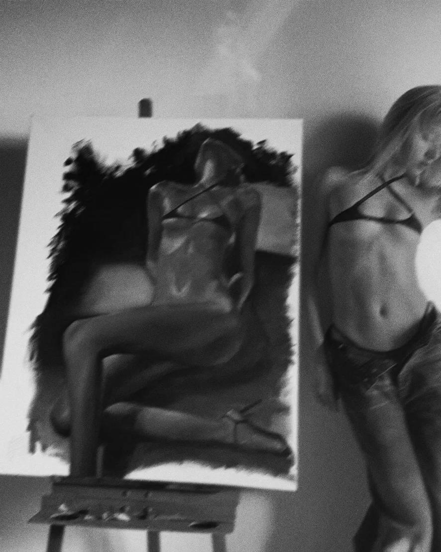 In addition to working here, I am also an artist and a creator of underwear! The photo is one of my paintings and I'm wearing underwear from my brand! You'll see even more on my streams 🔥